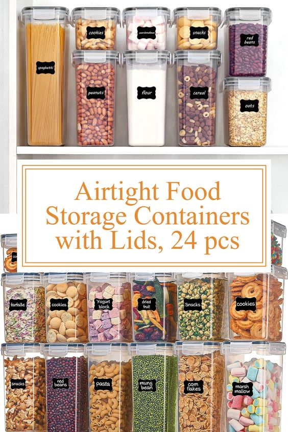 Discover how to enhance your pantry with our 24-piece set of BPA-Free airtight containers. Perfectly designed to secure your cereal, dry food, flour and sugar, while maximizing storage. Say goodbye to clutter and hello to a beautifully organized kitchen. Your purchase even includes 24 labels for seamless organization. Get ready to transform your pantry into a visual delight! #storage#pantry#organizing#organizingpantry